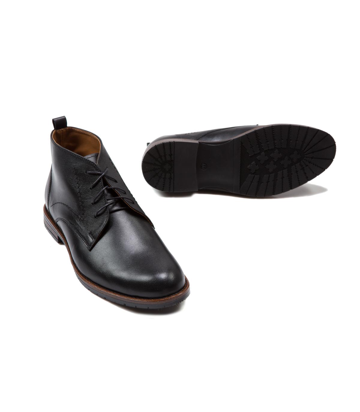 Czarne buty z cholewką na jesień i zimę. Buty wykonane z wysokiej jakości skóry naturalnej. Wewnątrz miękkie podbicie oraz również wykończenie ze skóry naturalnej. Polecane do eleganckich spodni jak i dżinsów. Czarne trzewiki męskie idealne na chłodniejsze dni, pasują do czarnych czy granatowych spodni oraz brązów czy szarości. Podeszwa tradycyjna sytntetyczna.