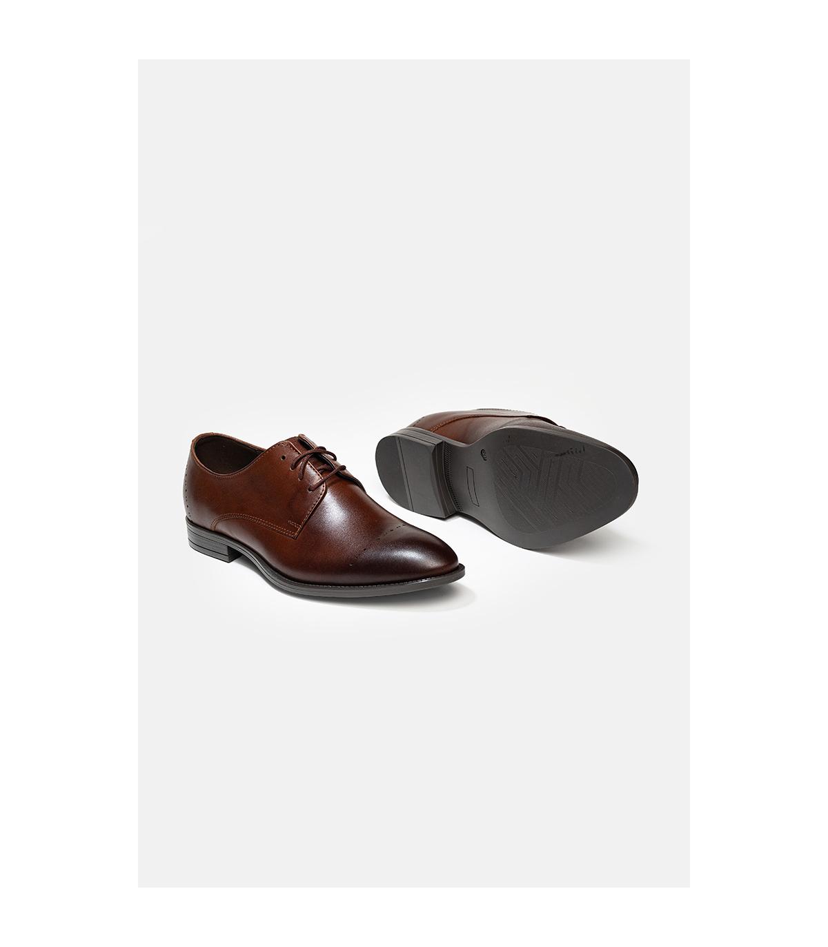 Brązowe, skórzane półbuty typu derby to klasyczny wybór, który doda elegancji każdej stylizacji. Ich mniej formalny charakter w porównaniu do Oxfordów sprawia, że są wszechstronnym dodatkiem do garderoby. Konstrukcja oparta na nowoczesnym kształcie kopyta nadaje butom modny wygląd, idealny dla współczesnego mężczyzny. Te półbuty świetnie pasują do klasycznych spodni z kantem w kolorach granatowym, czarnym czy brązowym. Nosząc je, zyskujesz nie tylko stylowy wygląd, ale także komfort i trwałość, które pozwolą cieszyć się nimi przez długi czas. Idealne na formalne okazje, jak również do codziennych, eleganckich stylizacji.