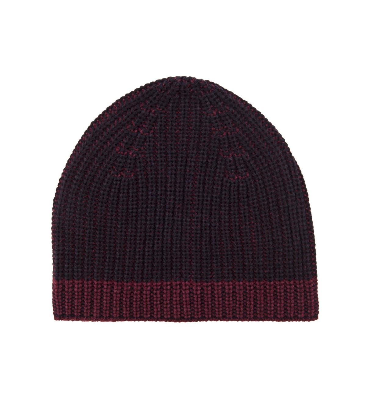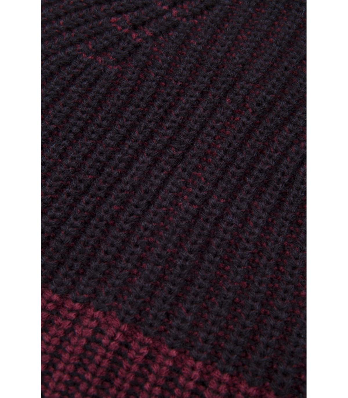 Czapka dzianinowa w prążek w kolorach bordowym i czarnym. Rozmiar uniwersalny. Skład: 100% akryl.