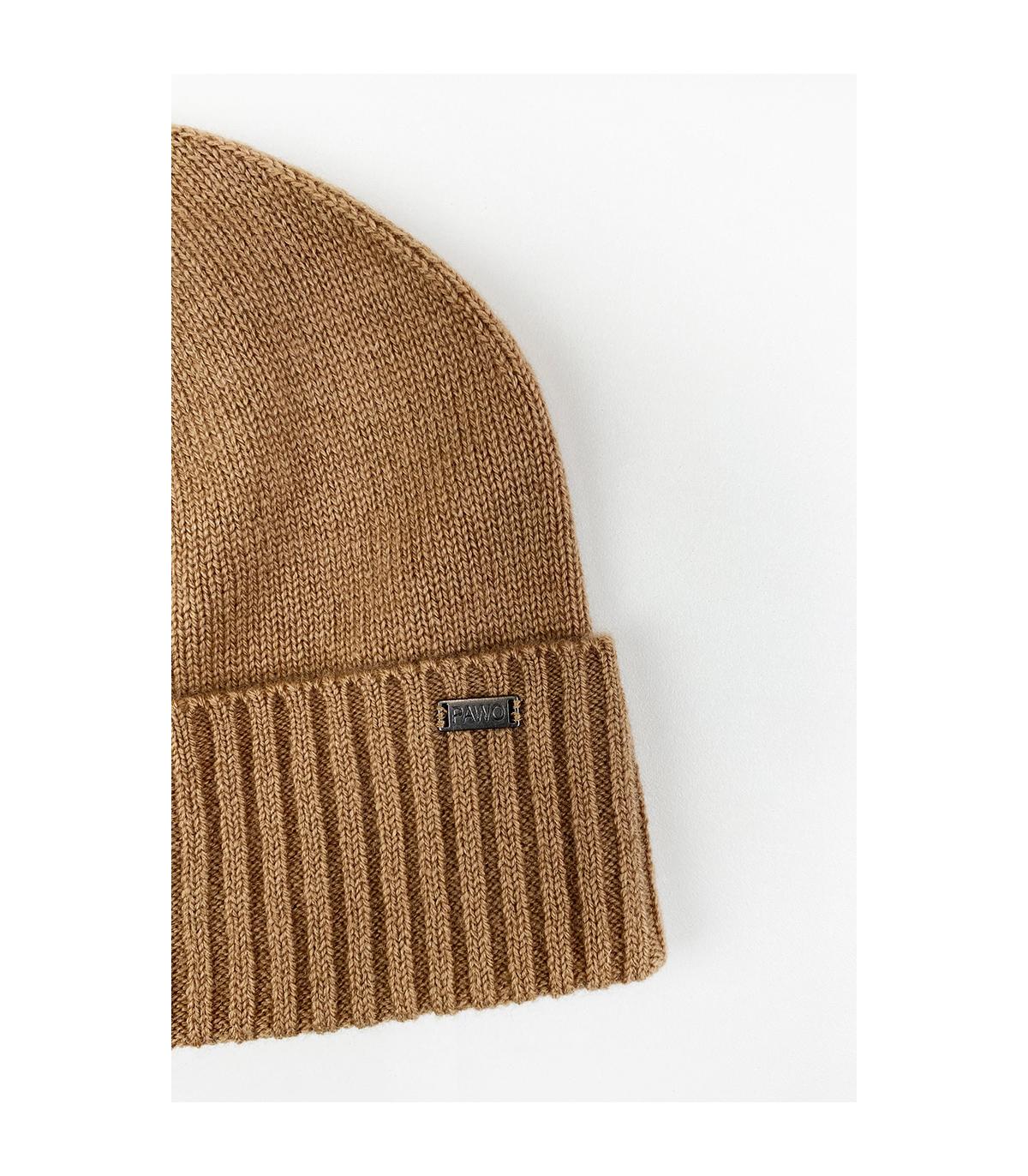 - Detal: na wywinięciu znajduje się delikatny metalowy emblemat z napisem PAWO, podkreślający markowy charakter czapki.