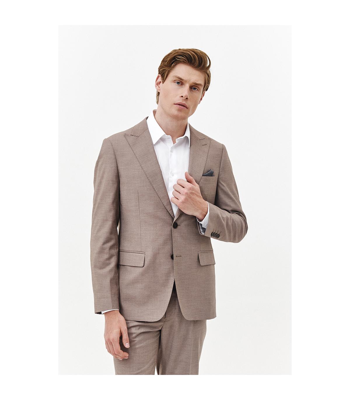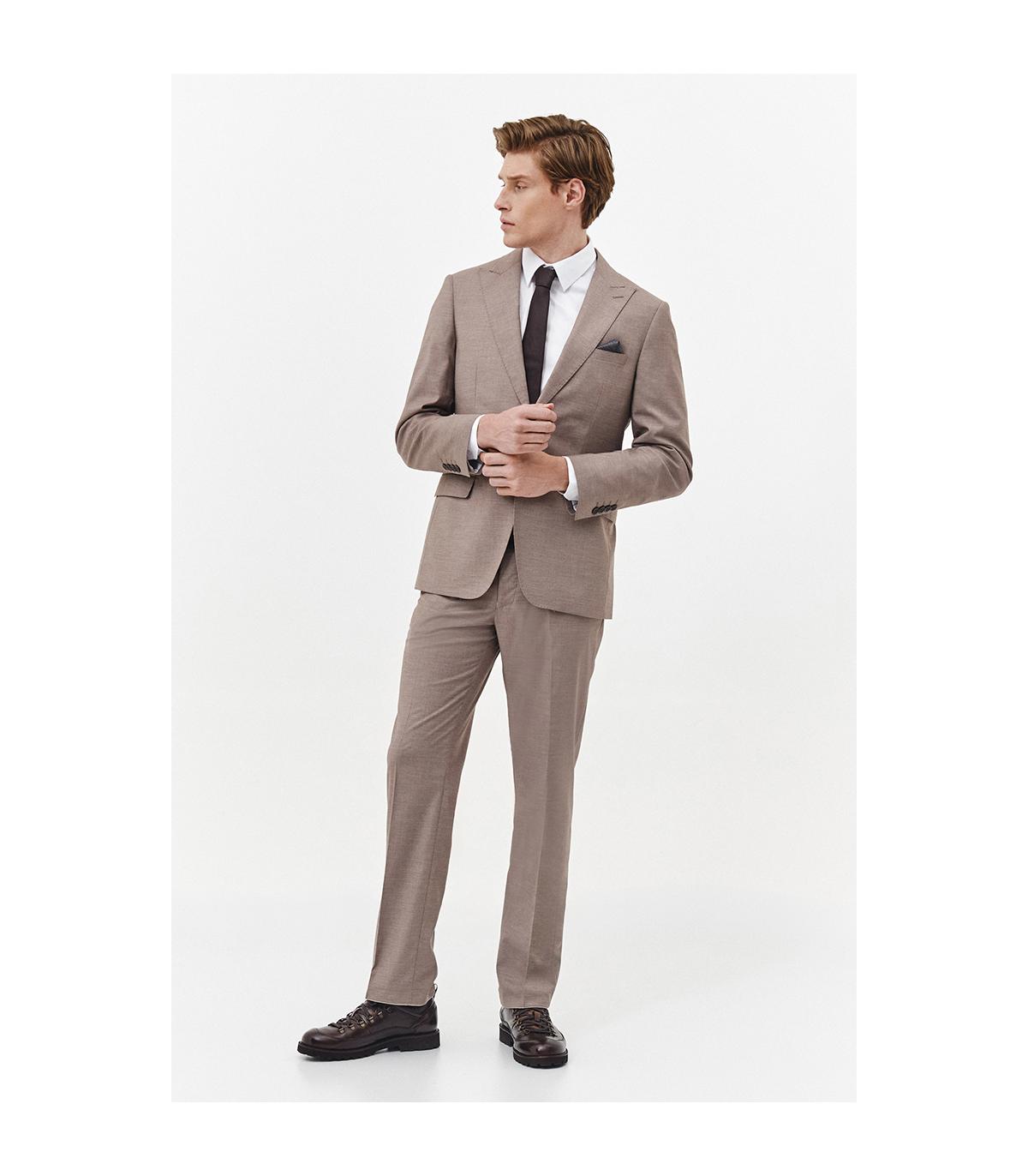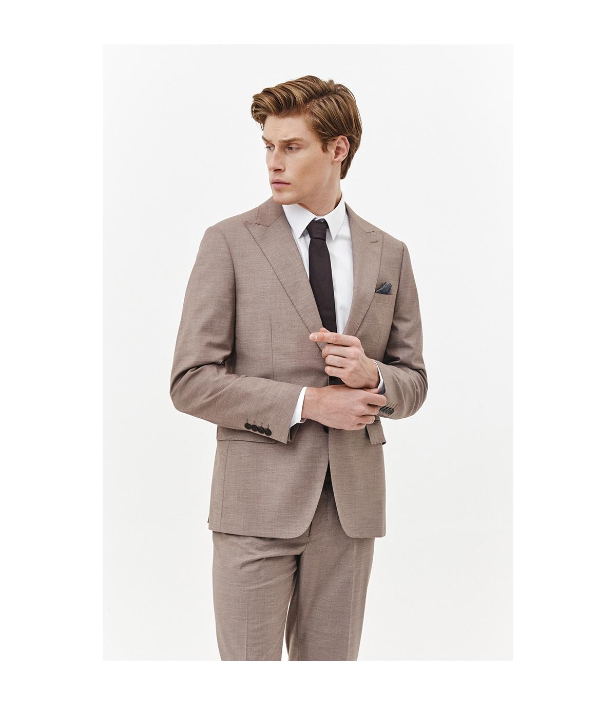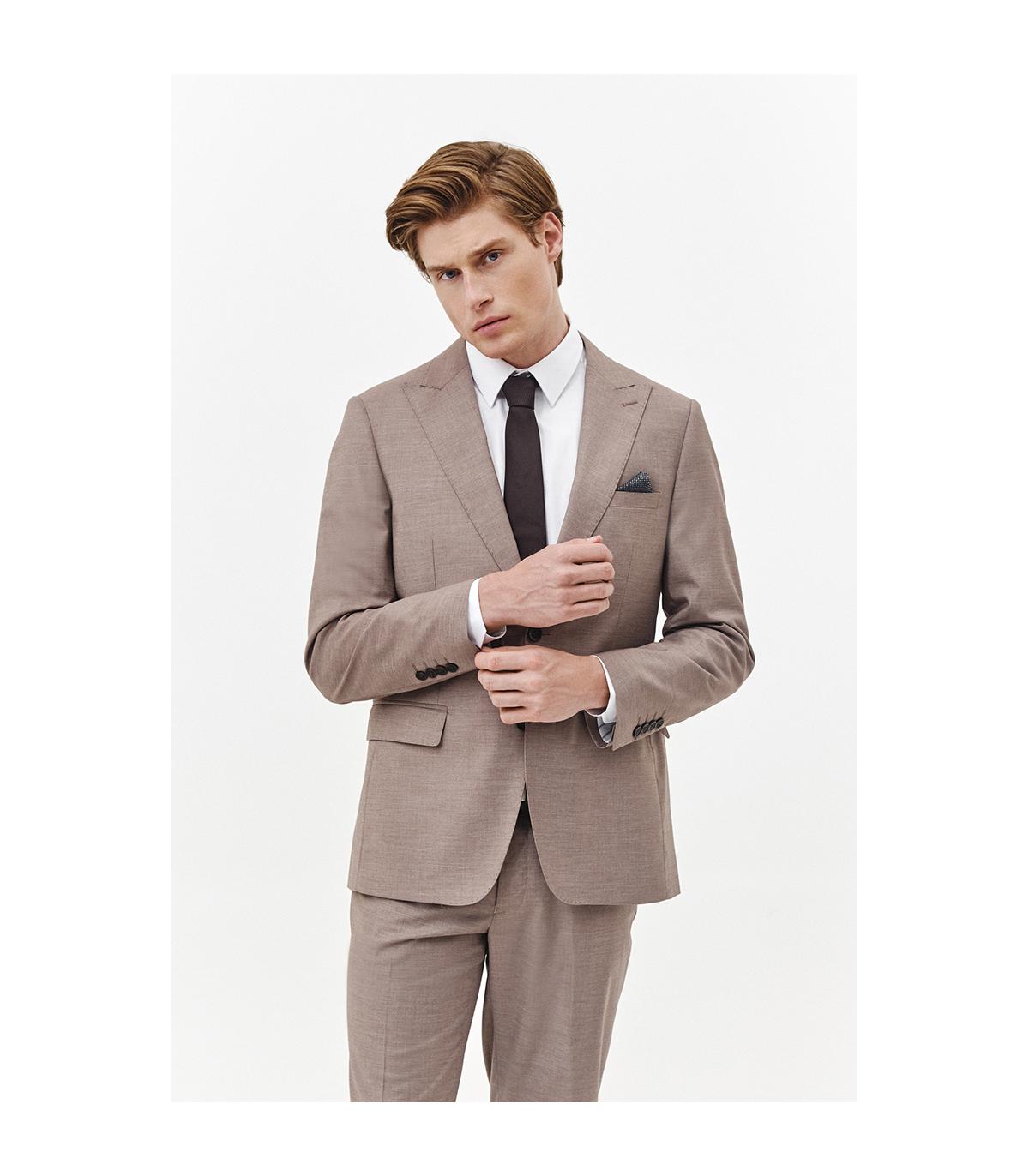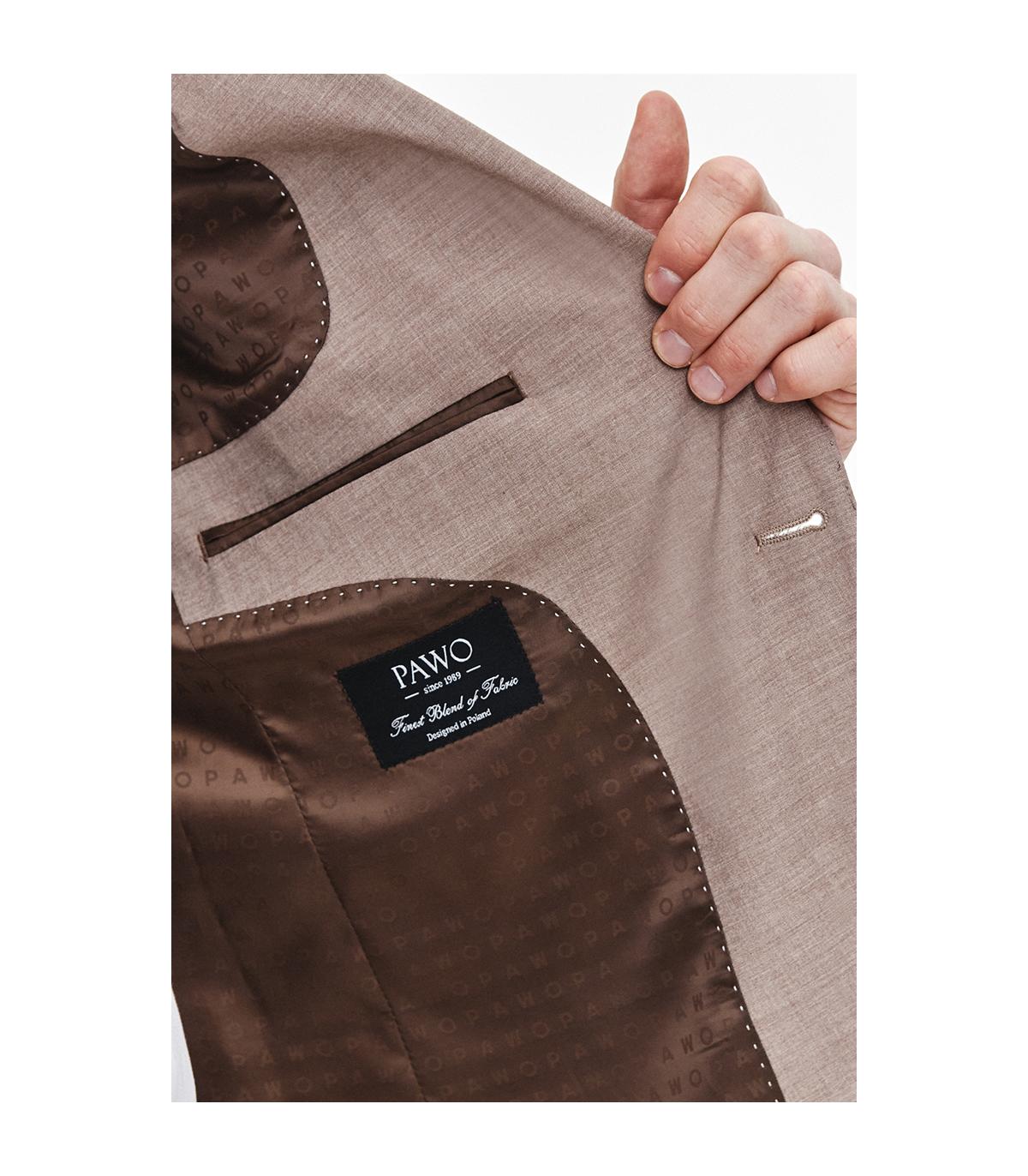 Garnitur NADO to elegancka propozycja w chłodnym, beżowym odcieniu, utrzymana w nowoczesnej, a jednocześnie klasycznej estetyce. Uszyty został z wysokiej jakości tkaniny o składzie 70% poliester, 28% wiskoza i 2% elastan, co zapewnia jej trwałość, komfort oraz delikatną elastyczność. Model odszyto na poliestrowej, żakardowo logowanej podszewce, która podnosi walory użytkowe i estetyczne produktu.