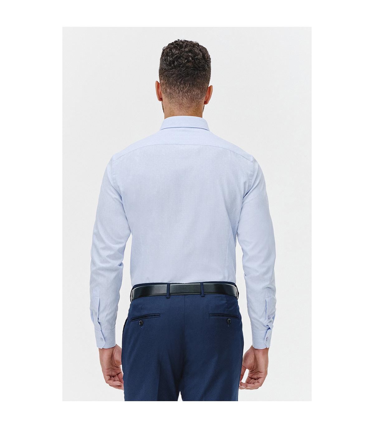 Nasza klasyczna błękitna koszula doskonale komponuje się z klasycznym granatowym garniturem, dodając szyku i powagi Twojemu wyglądowi w formalnych okazjach. Jednak to nie wszystko - dzięki swojej uniwersalności, koszula świetnie pasuje także do stylu casual. Możesz ją zestawić zarówno z bawełnianymi spodniami, chinosami, jak i jeansami w różnych kolorach, takich jak granatowy, beżowy czy biały.