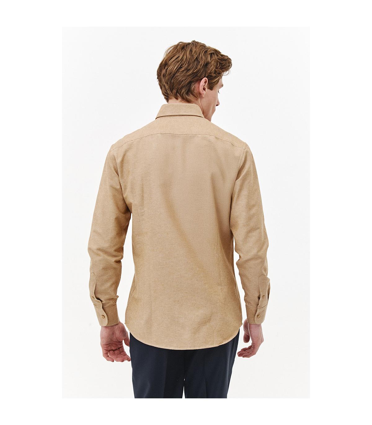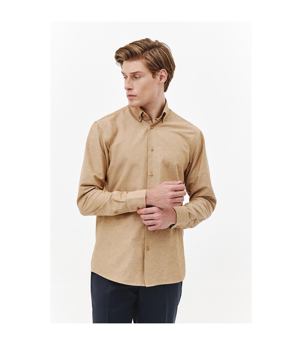 Koszula PARO to casualowa propozycja w modnym, jesiennym odcieniu brązu, wykonana z wysokiej jakości tkaniny oxford o składzie 100% bawełna. Charakterystyczny splot tkaniny sprawia, że koszula jest przewiewna, wygodna i jednocześnie odporna na zagniecenia, co czyni ją idealnym wyborem na co dzień.