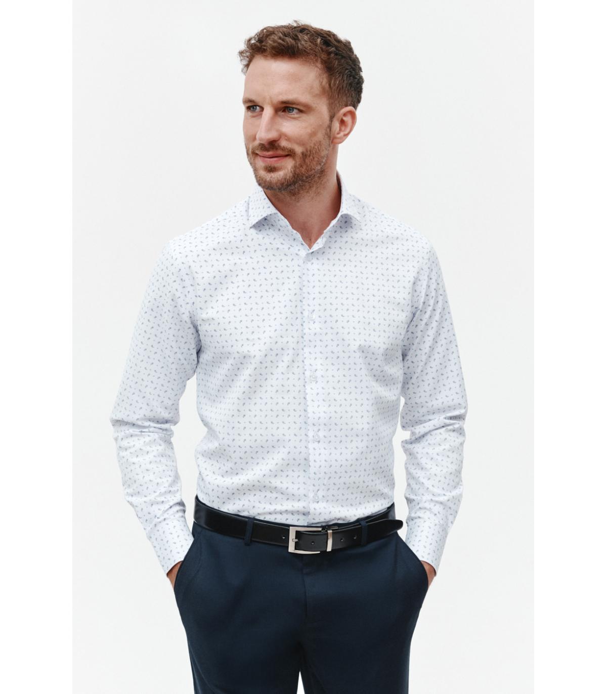 Uniwersalna i Stylowa – biała koszula NIKS to świetna alternatywa dla gładkich modeli. Dzięki mikrowzorowi zyskujesz unikatowy wygląd, który doskonale komponuje się z granatowym garniturem, chinosami czy nawet jeansami.