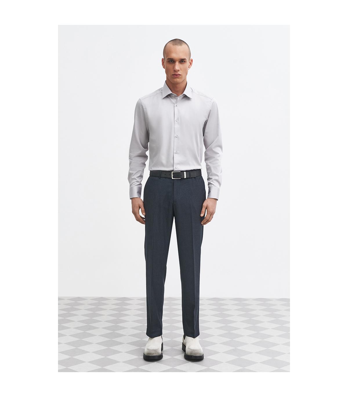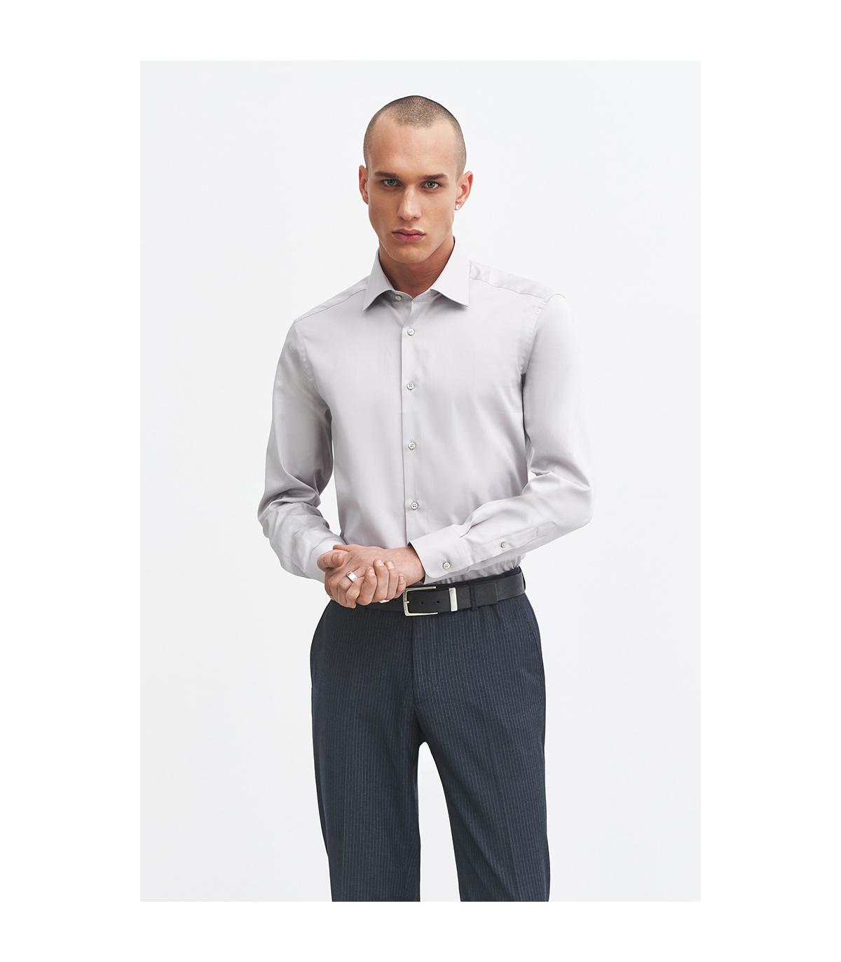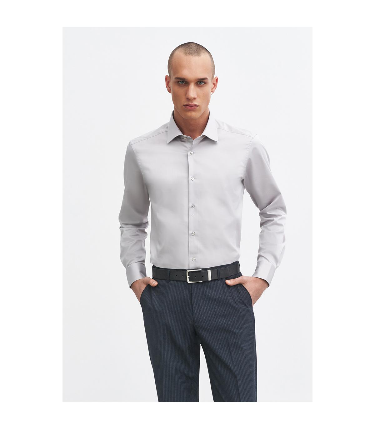 Koszula męska SIL w modnym jasnoszarym kolorze, uszyta z wysokogatunkowej, naturalnej tkaniny 100% bawełny. Wyposażona w stylowy kołnierzyk półwłoski oraz zaokrąglone mankiety, co nadaje jej klasy i elegancji. Ta uniwersalna koszula jest doskonałym wyborem dla mężczyzn ceniących szyk i komfort.