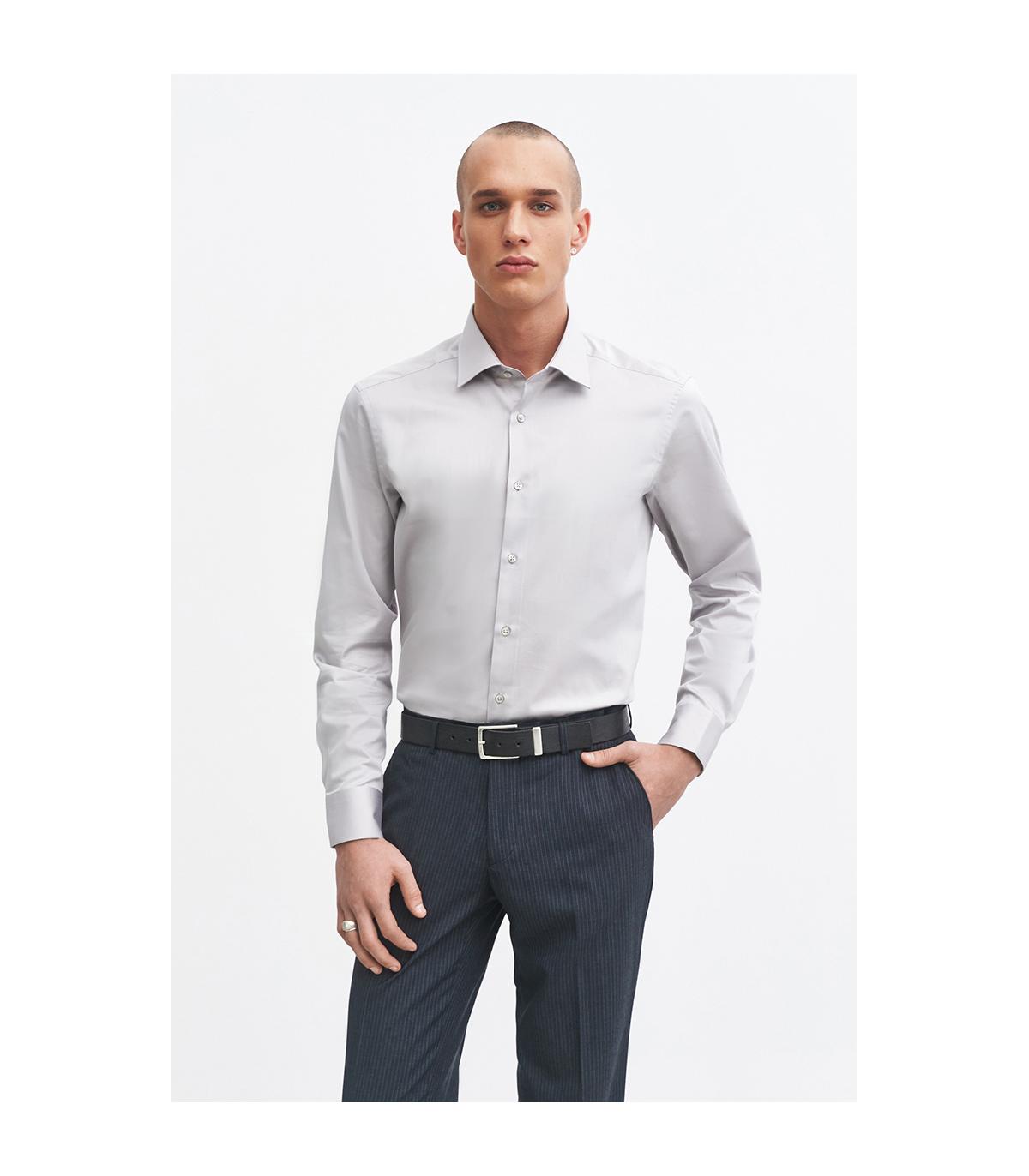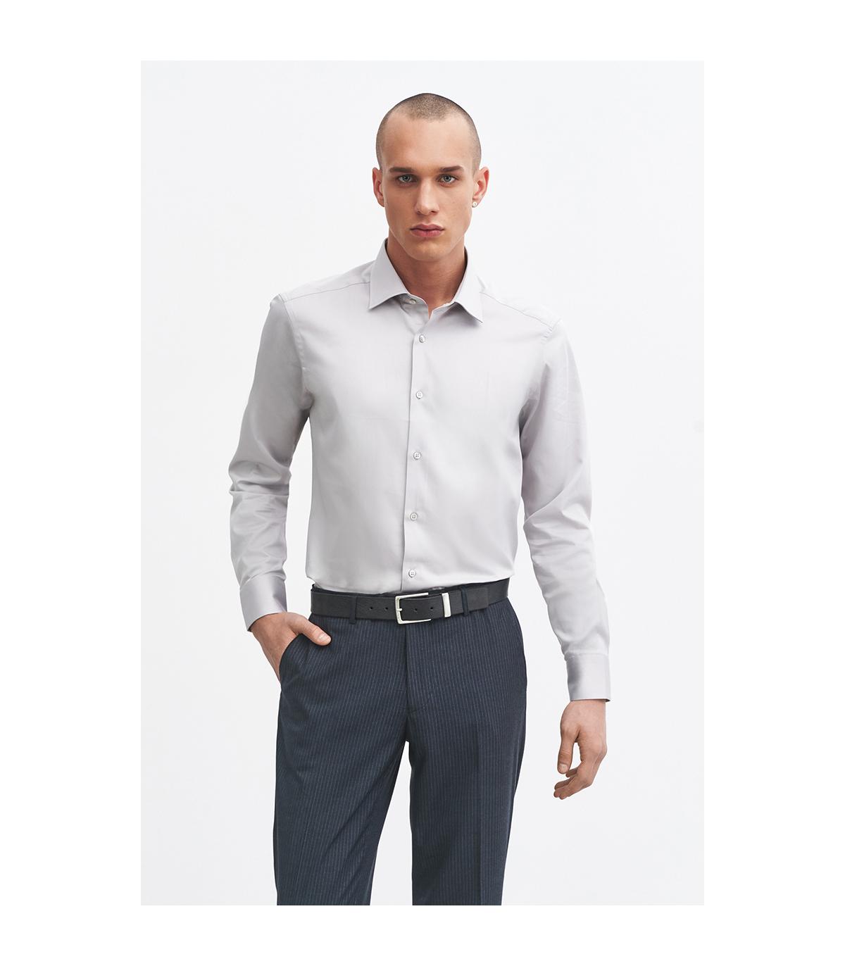 Koszula męska SIL w modnym jasnoszarym kolorze, uszyta z wysokogatunkowej, naturalnej tkaniny 100% bawełny. Wykończona w stylowy kołnierzyk półwłoski oraz zaokrąglone mankiety, co nadaje jej klasy i elegancji. Ta uniwersalna koszula jest doskonałym wyborem dla mężczyzn ceniących szyk i komfort.