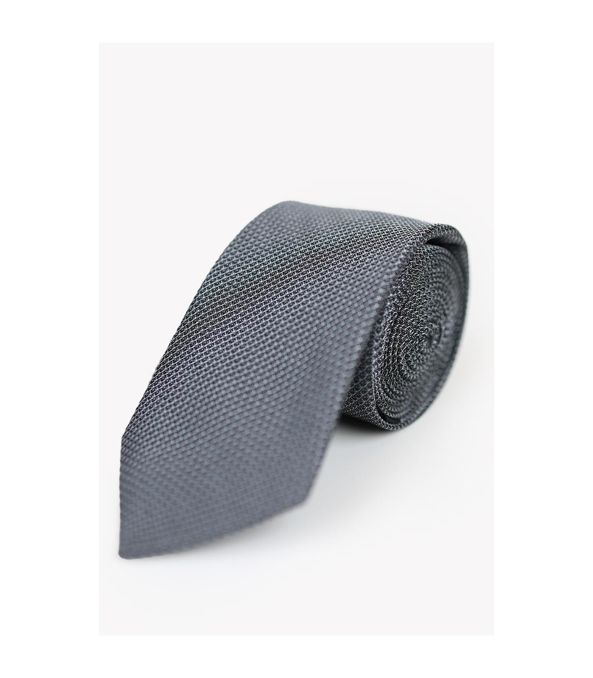Klasyczny krawat męski o szerokości 6,5 cm, wykonany z ciemnoszarej poliestrowej tkaniny ozdobionej subtelnym wzorem. Jego ponadczasowy design czyni go wszechstronnym dodatkiem, pasującym zarówno do formalnych, jak i półformalnych stylizacji.