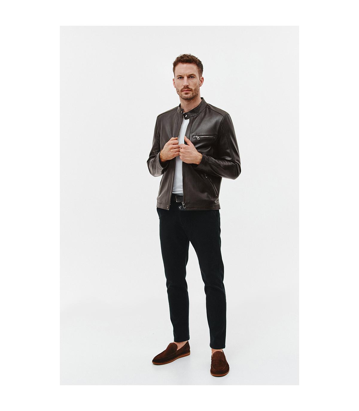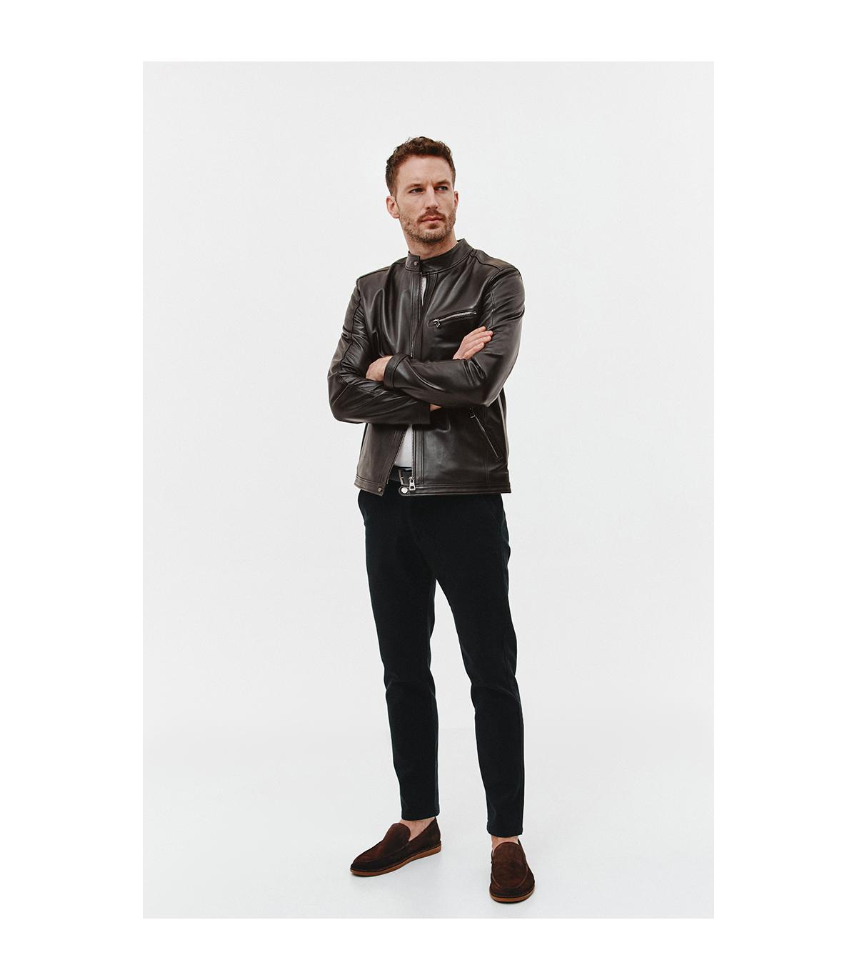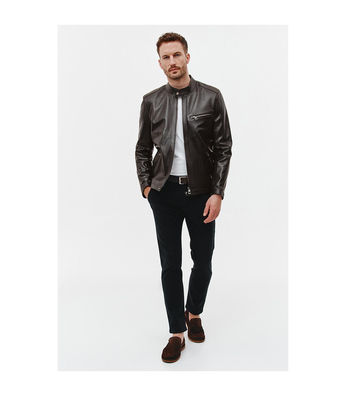 Szukasz ponadczasowej, eleganckiej kurtki męskiej ze skóry naturalnej? Kurtka Rob to doskonały wybór dla mężczyzn, którzy cenią wysoką jakość, minimalizm i uniwersalny styl. Wykonana z miękkiej skóry jagnięcej w bardzo ciemnym brązie, stanowi idealne połączenie klasyki i nowoczesności.
