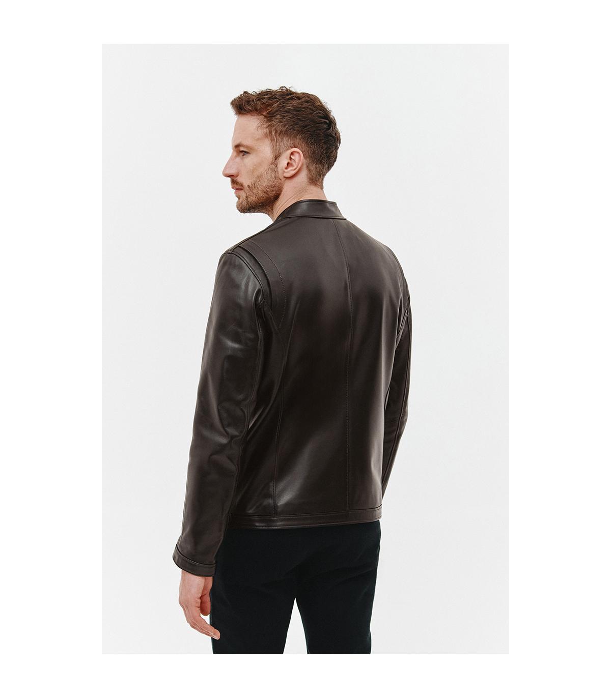 CIEMNOBRĄZOWA SKÓRZANA KURTKA MĘSKA ROB