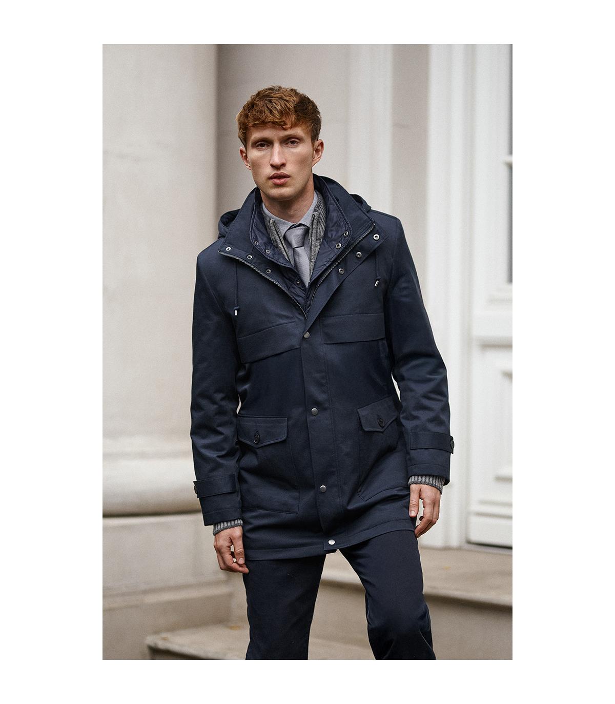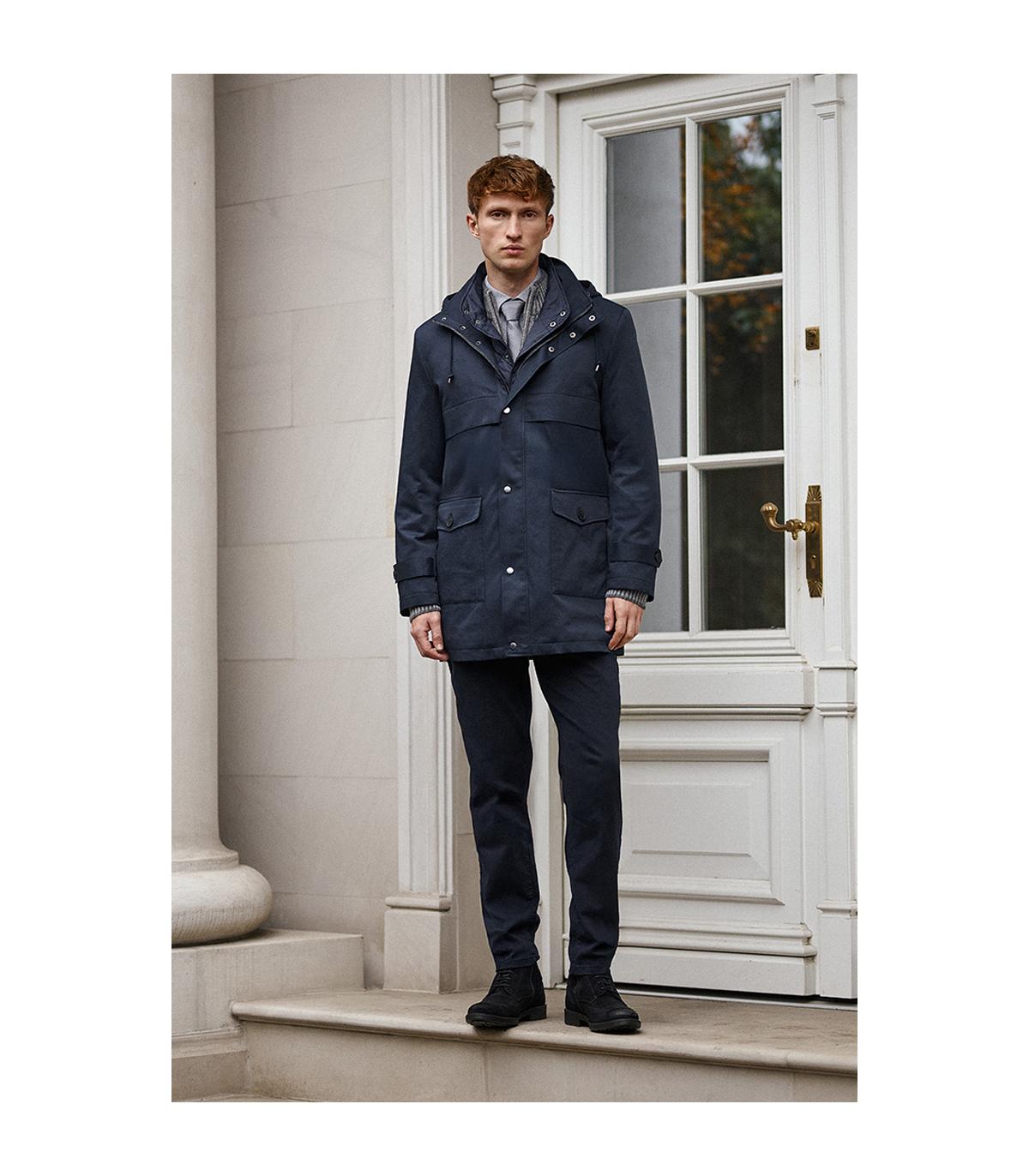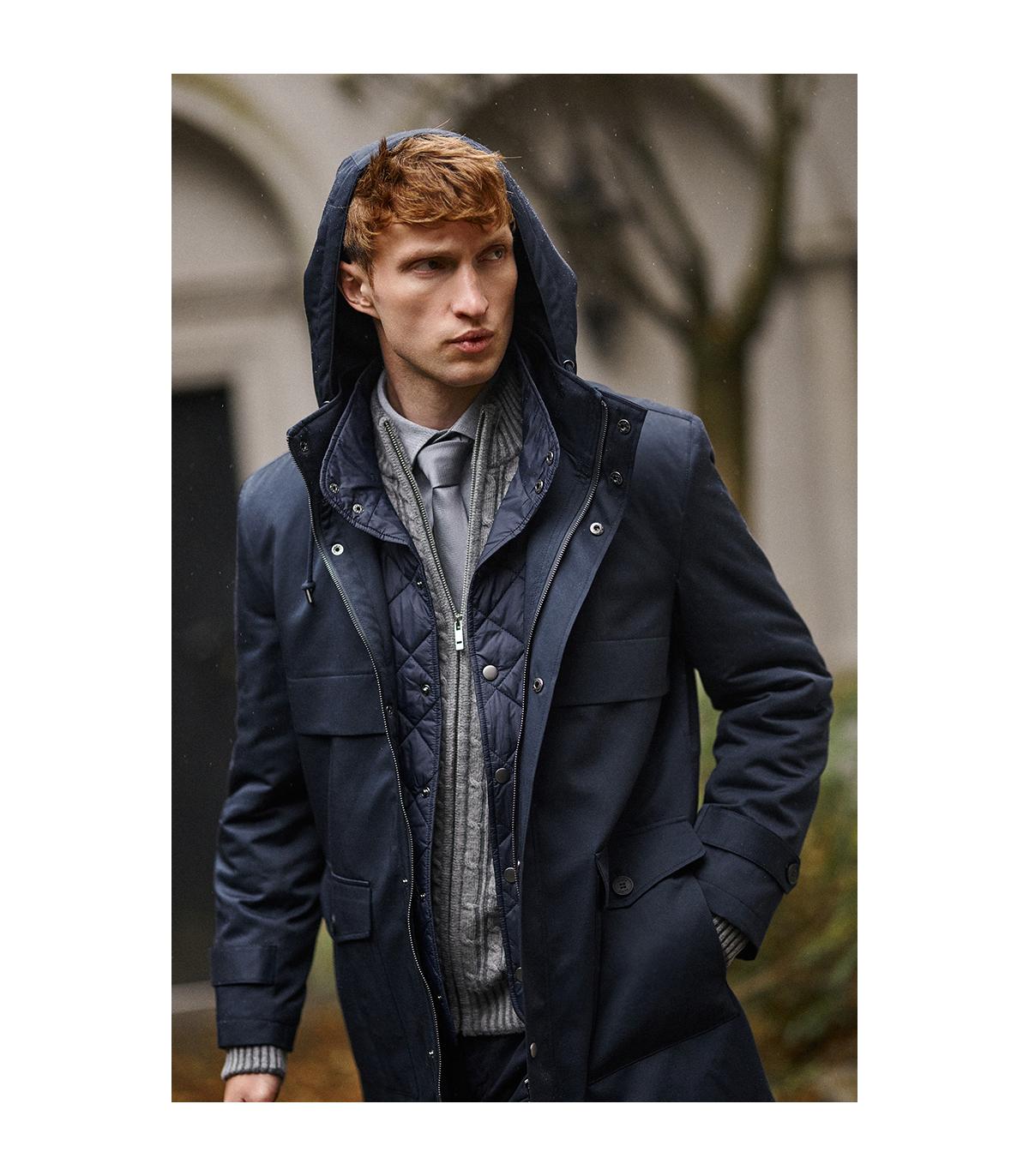 LUKE to dłuższa, granatowa kurtka męska w stylu parki, zaprojektowana z myślą o komforcie i uniwersalności. Uszyta z wytrzymałej tkaniny o składzie 75% poliester i 25% bawełna, na poliamidowej podszewce, zapewnia odpowiednią ochronę przed chłodem i wiatrem. Kurtka posiada pikowaną podpinkę, dzięki czemu świetnie sprawdzi się w sezonie przejściowym jesienno- wiosennym.