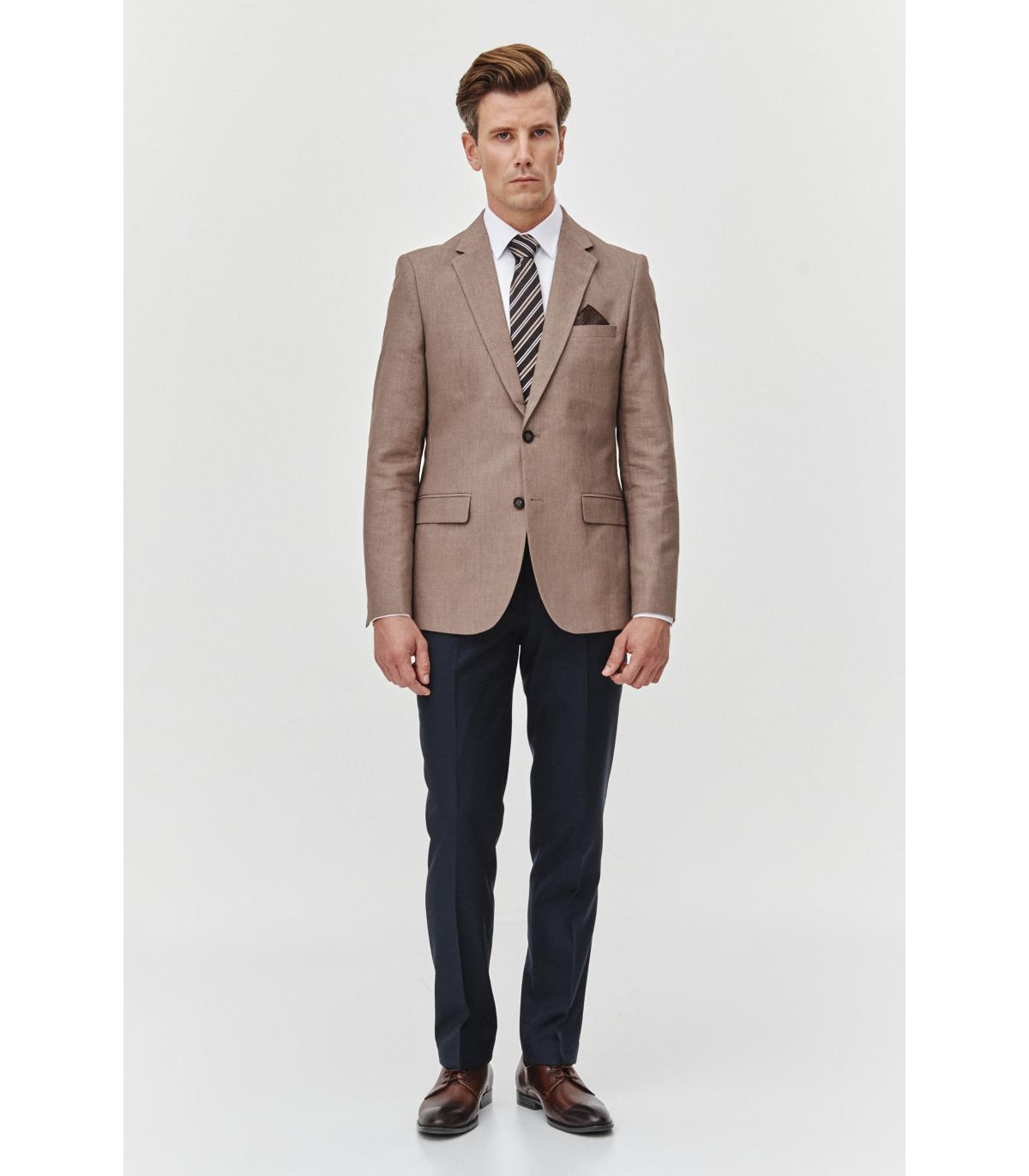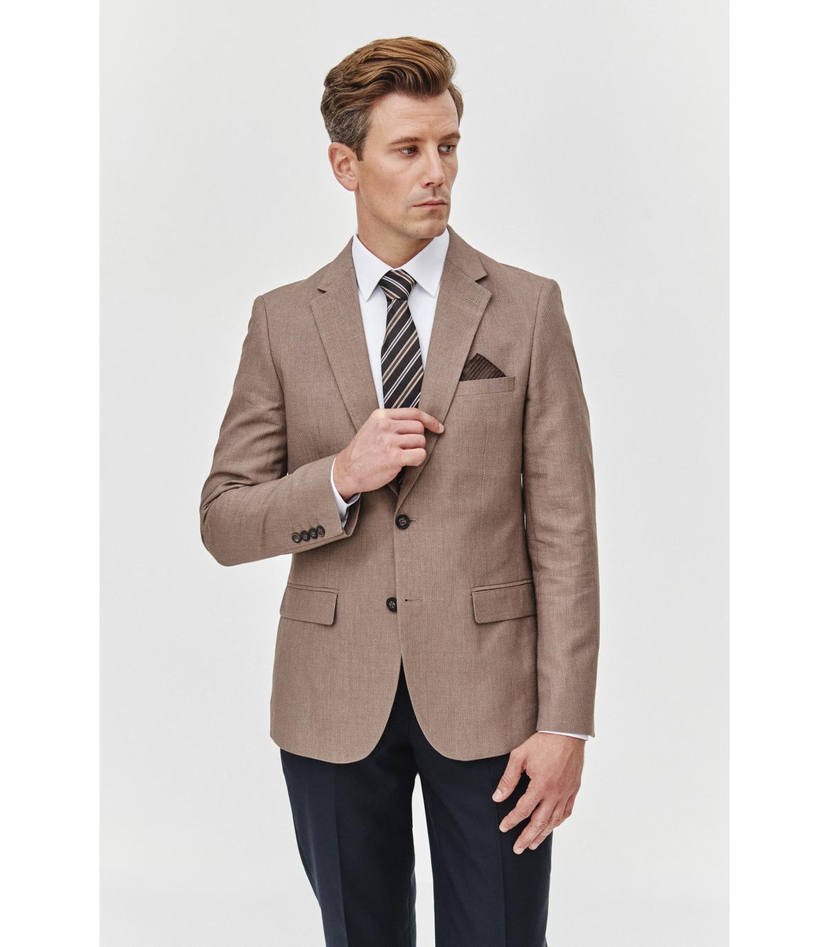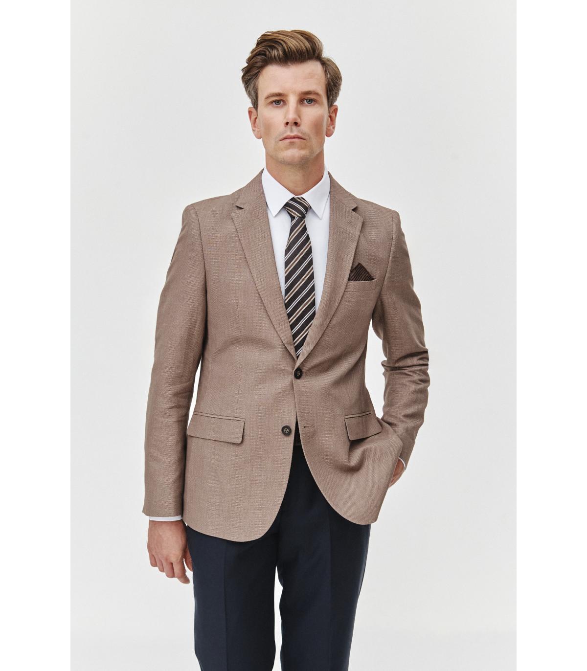 Marynarka FOGO to casualowa propozycja, idealna dla mężczyzn ceniących sobie styl i komfort. Wykonana z tkaniny o składzie 24% len, 76% bawełna, wyróżnia się widoczną strukturą splotu oraz kolorową, drukowaną półpodszewką, która dodaje jej wyjątkowego charakteru.