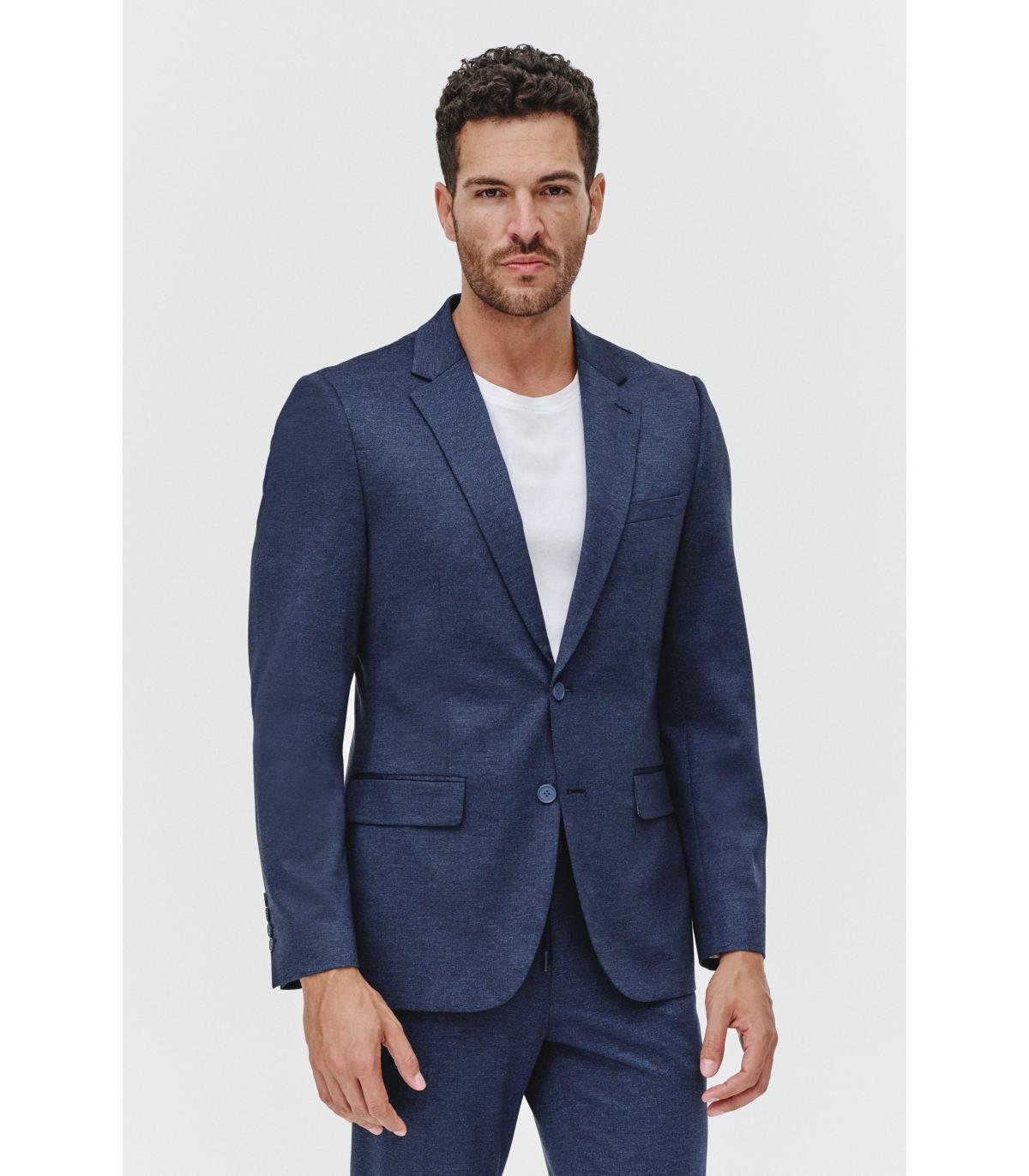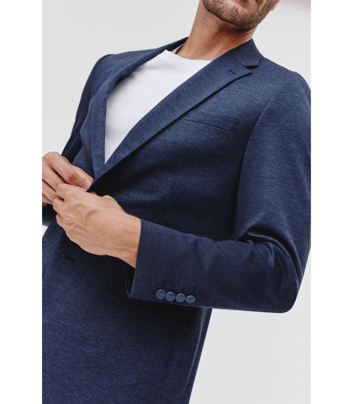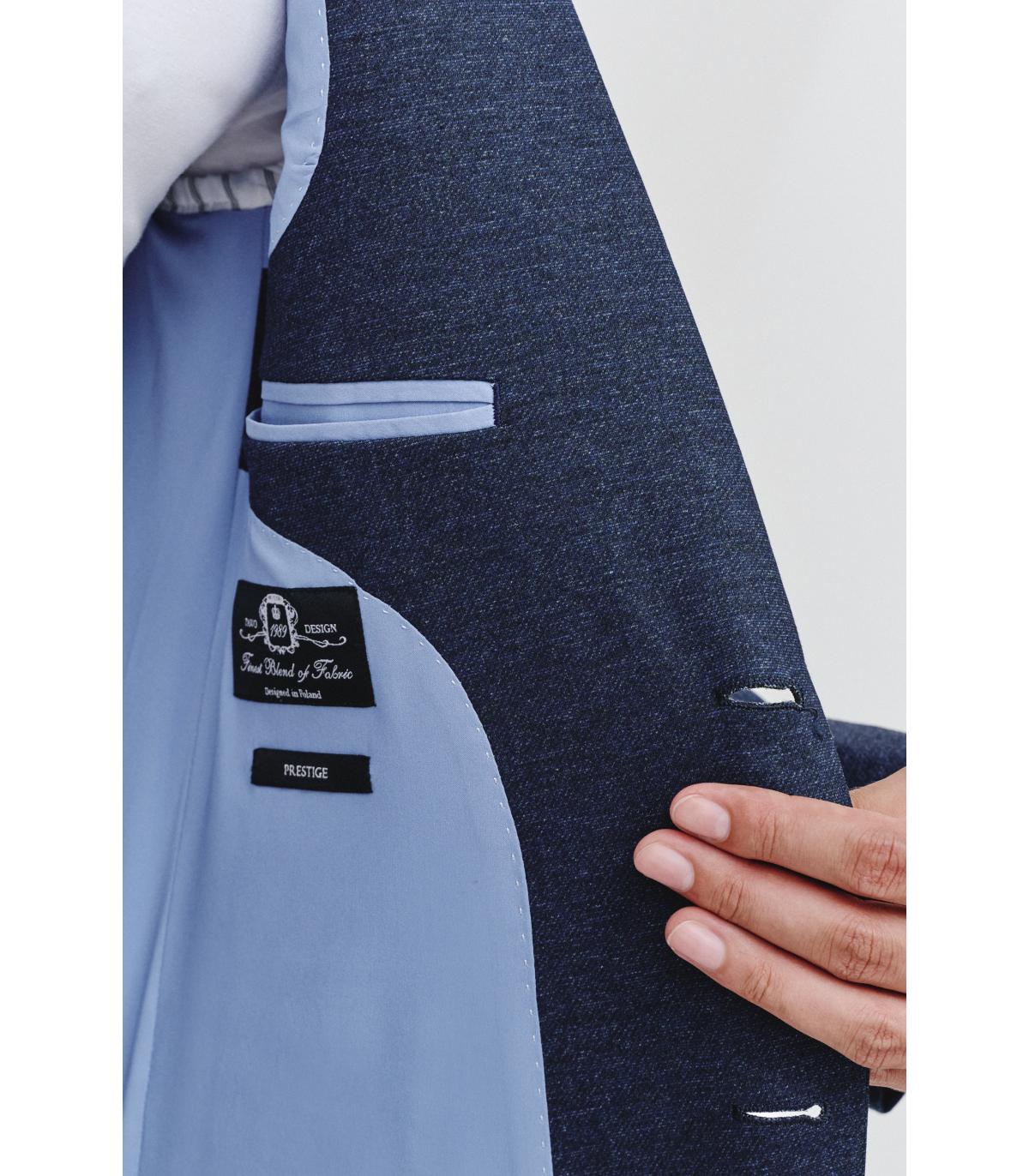 Marynarka dzianinowa RUNCORN to część granatowego garnituru dzianinowego, który łączy w sobie klasyczny wygląd z nowoczesną wygodą. Stworzona z myślą o codziennym użytkowaniu, idealnie wpisuje się w potrzeby mężczyzn poszukujących stylu, swobody ruchu i uniwersalności.