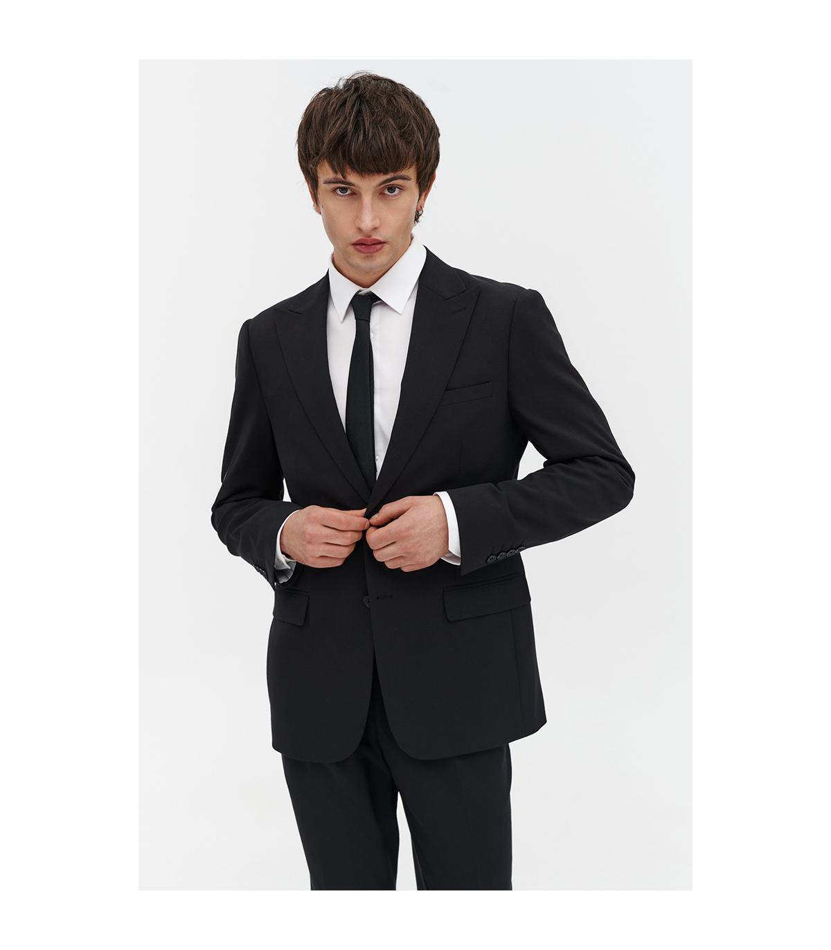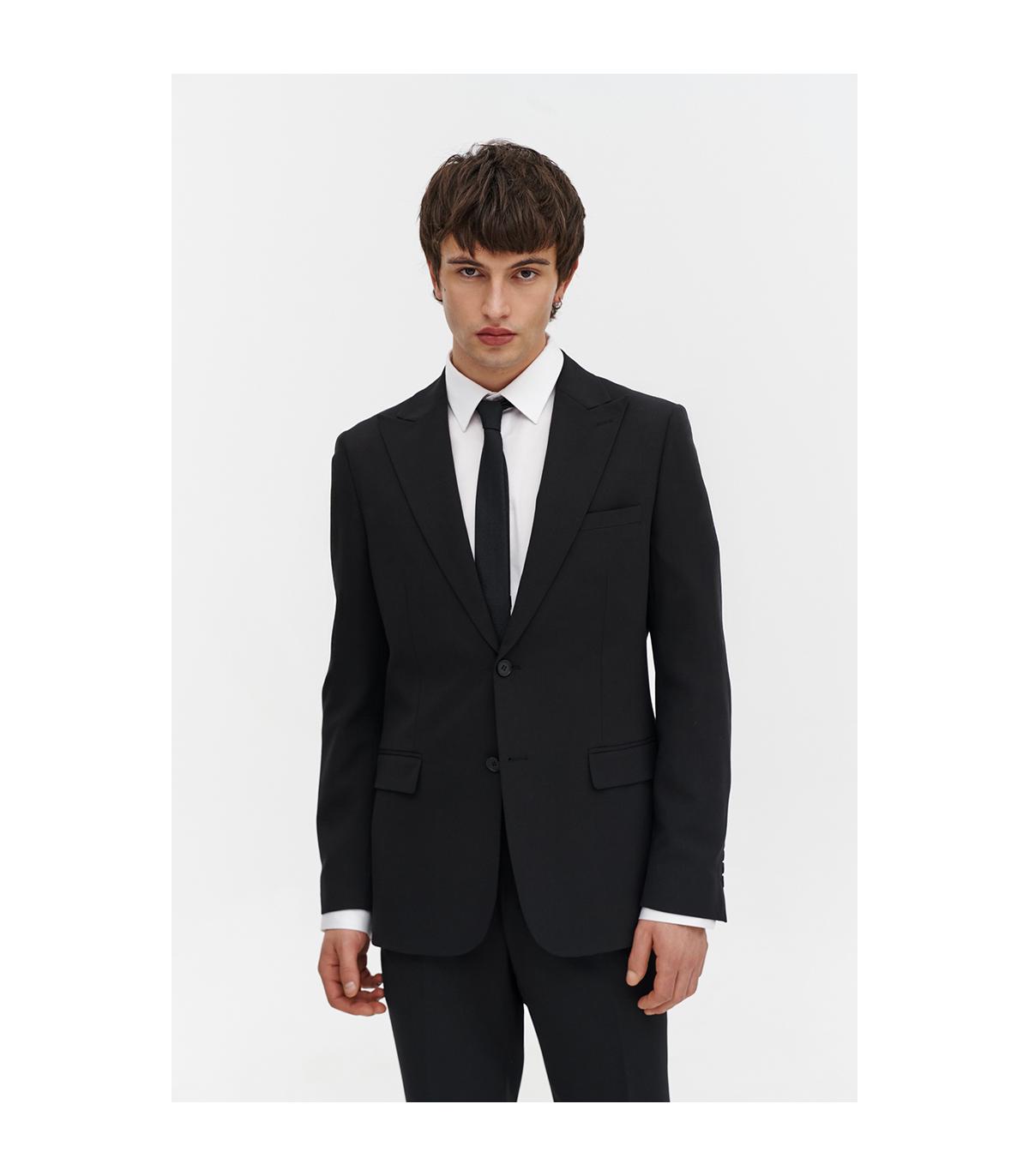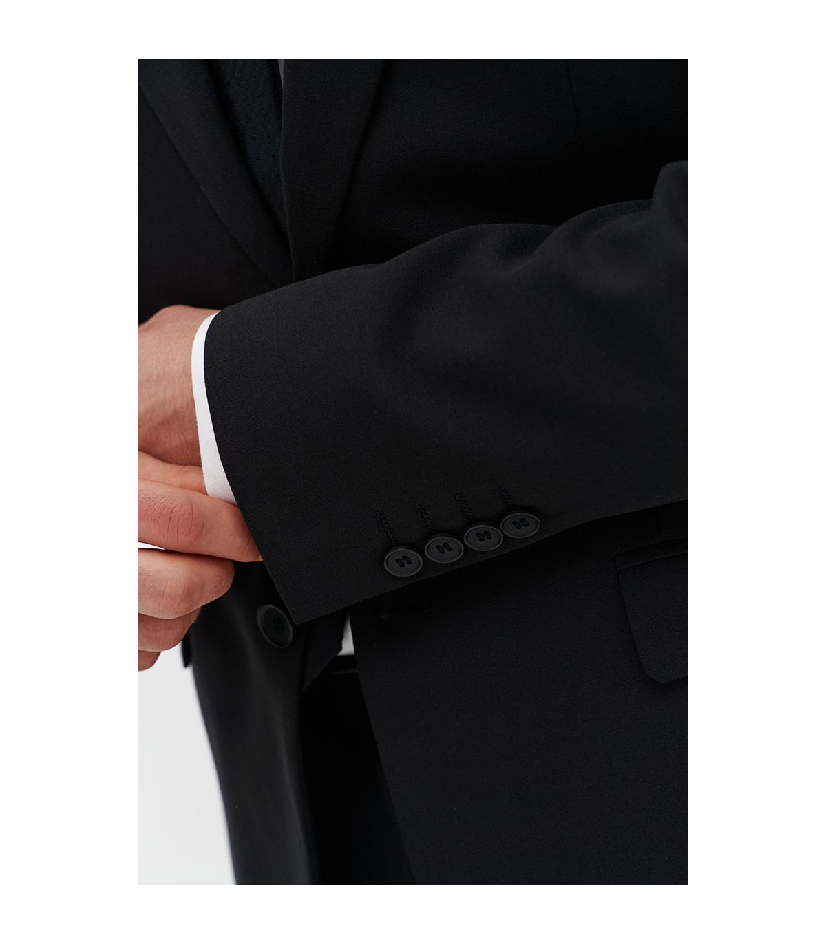 Marynarka JACOB to nowość dedykowana tegorocznym maturzystom – elegancka, czarna a jednocześnie stylowa propozycja na studniówkowy bal. Uszyta została z tkaniny o zwiększonej elastyczności, dzięki czemu doskonale układa się na sylwetce i zapewnia komfort przez całą noc. Skład tkaniny to 65% poliester, 30% wiskoza i 5% elastan.