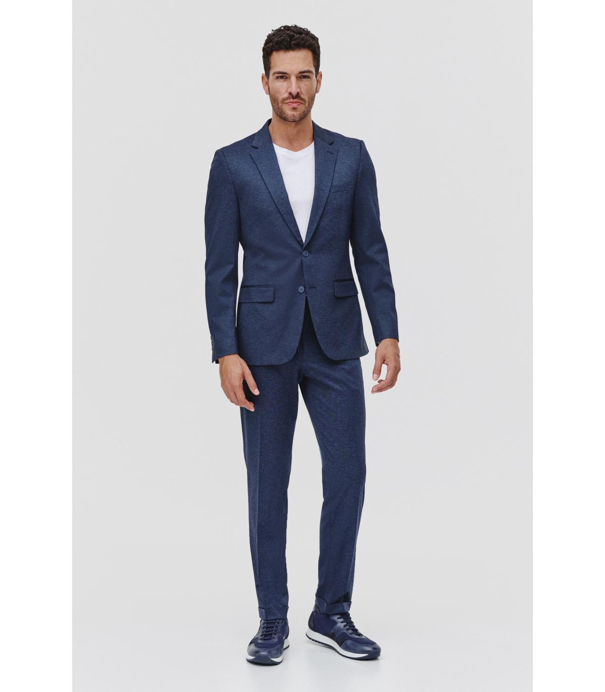 Spodnie dzianinowe RUNCORN to element granatowego garnituru dzianinowego, który łączy klasyczny wygląd z wyjątkową wygodą. Uszyte z dzianiny o składzie 60% poliester, 35% wiskoza i 5% elastan, zachowują elegancki charakter, jednocześnie zapewniając swobodę ruchu na co dzień.