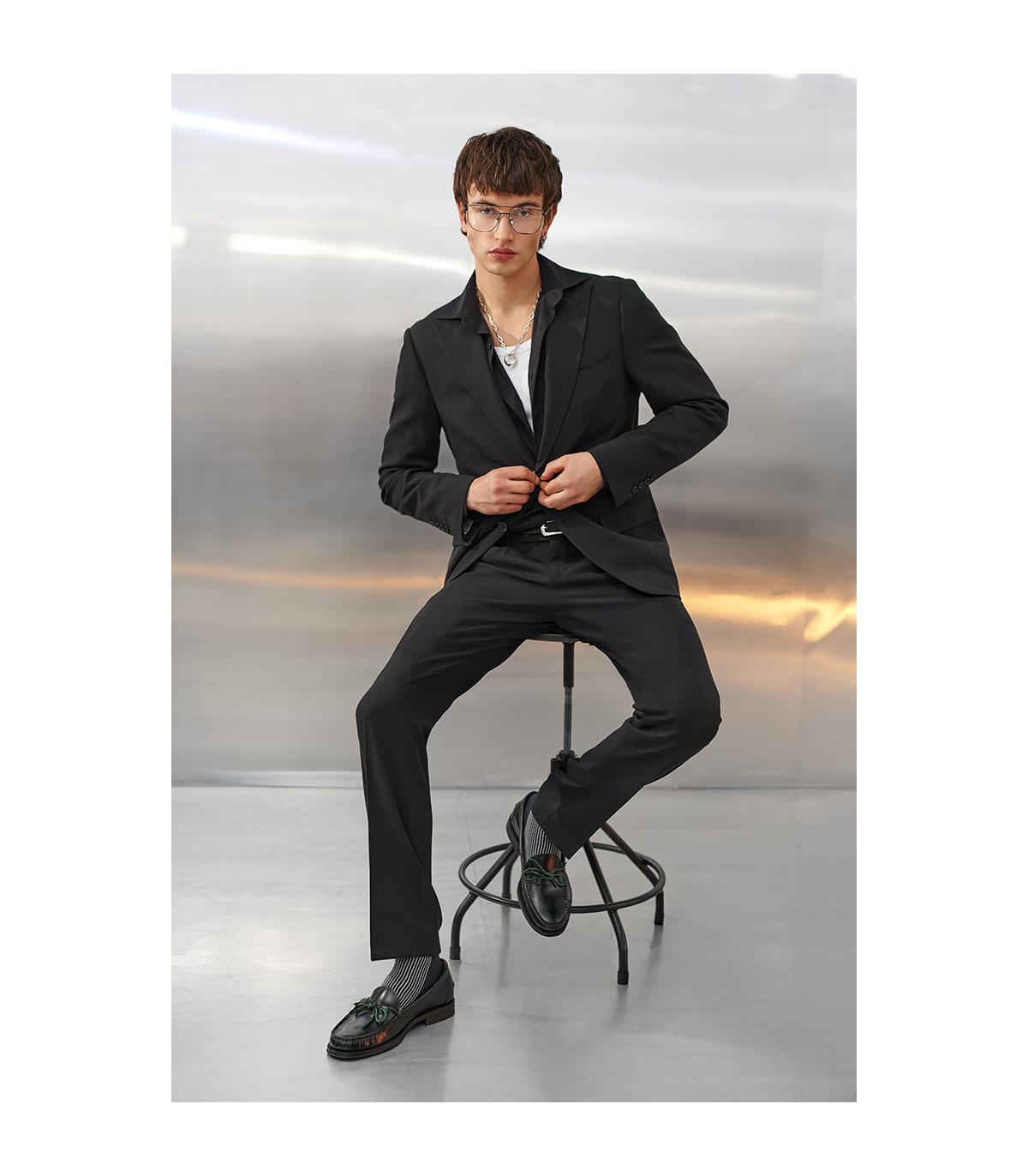 Z marynarką JACOB spodnie tworzą zestaw idealny na wiele okazji.Marynarka posiada zamknięte klapy, kieszenie z patkami, dwie szlice oraz czarną, żakardowo logowaną podszewkę, która podkreśla jej elegancki charakter.