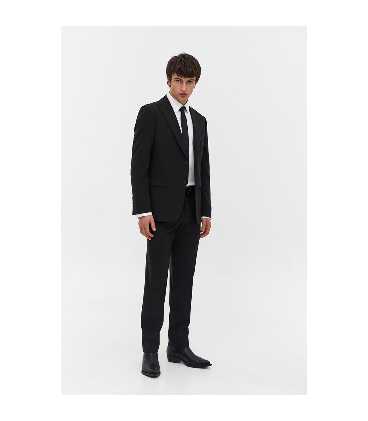 Spodnie JACOB to nowość dedykowana tegorocznym maturzystom – eleganckie, czarne a jednocześnie jako stylowa propozycja na studniówkowy bal. Uszyte został z tkaniny o zwiększonej elastyczności, dzięki czemu doskonale układają się na sylwetce i zapewniają komfort przez całą noc. Skład tkaniny to 65% poliester, 30% wiskoza i 5% elastan.