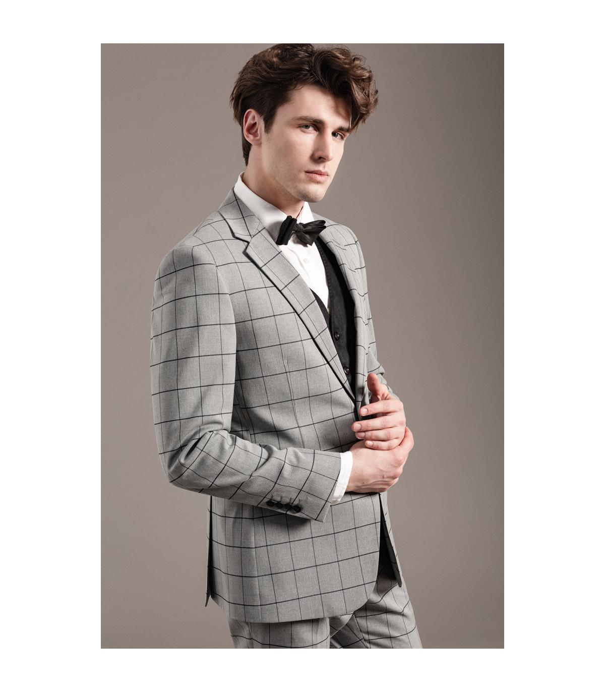 SZARY GARNITUR MĘSKI W KRATĘ BANGOR
