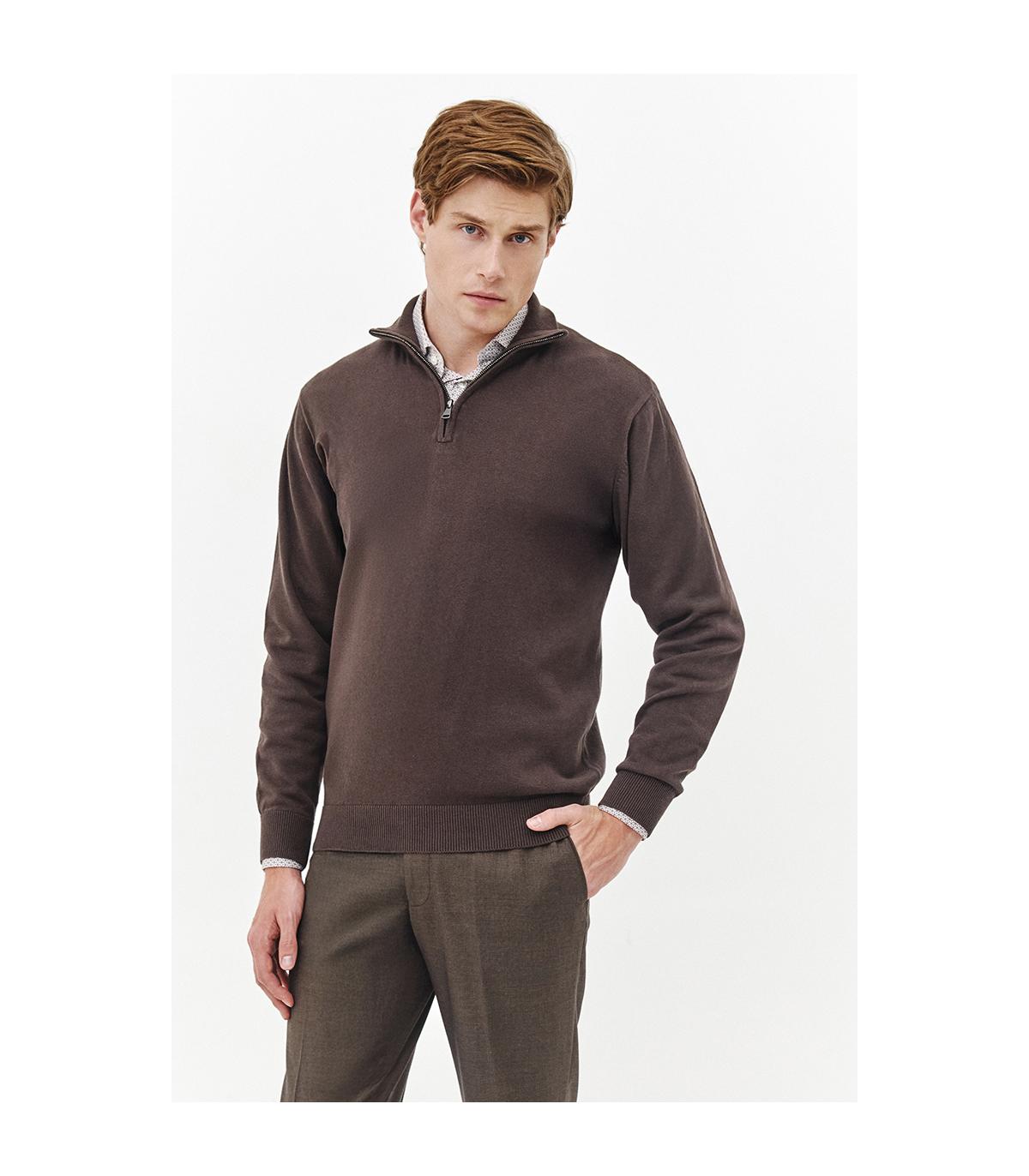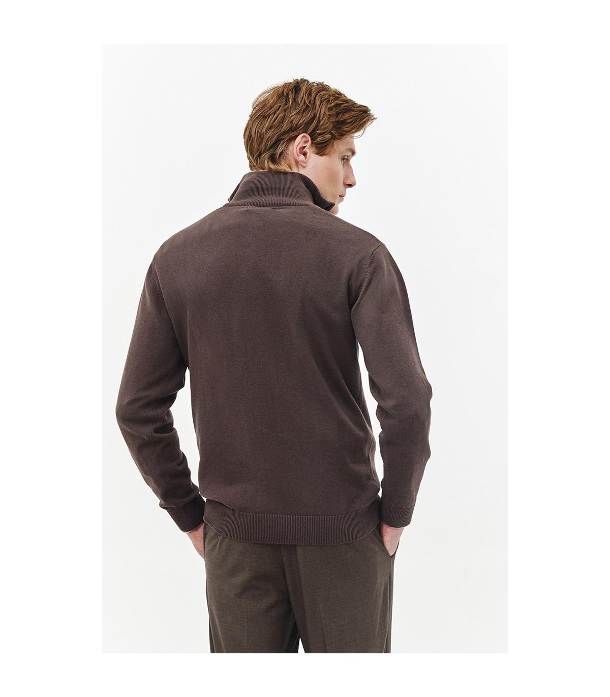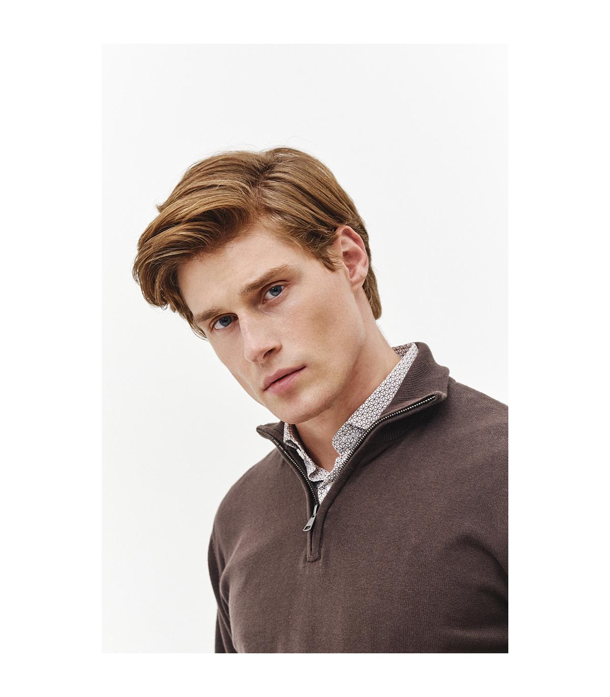 Stylowy półgolf z krótkim zapięciem na zamek, dostępny w uniwersalnym kolorze brązowym. Wykonany z naturalnej bawełny (100%), zapewnia komfort noszenia, miękkość i przewiewność. Dzięki delikatnej, gładkiej strukturze dzianiny półgolf ROKO doskonale dopasowuje się do sylwetki, zachowując przy tym swobodę ruchów.