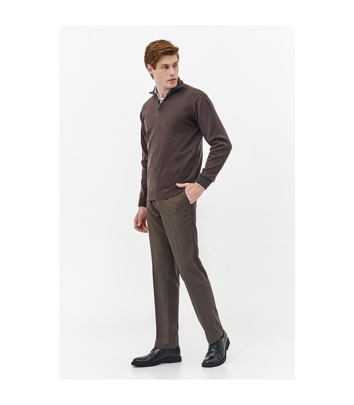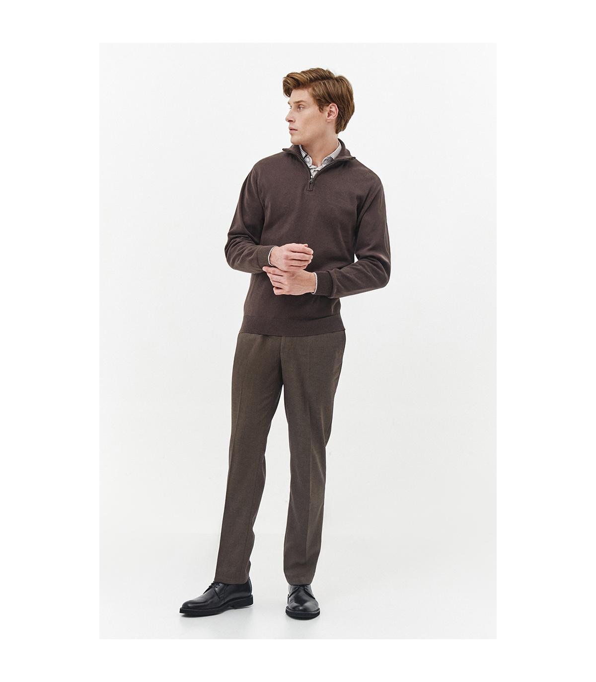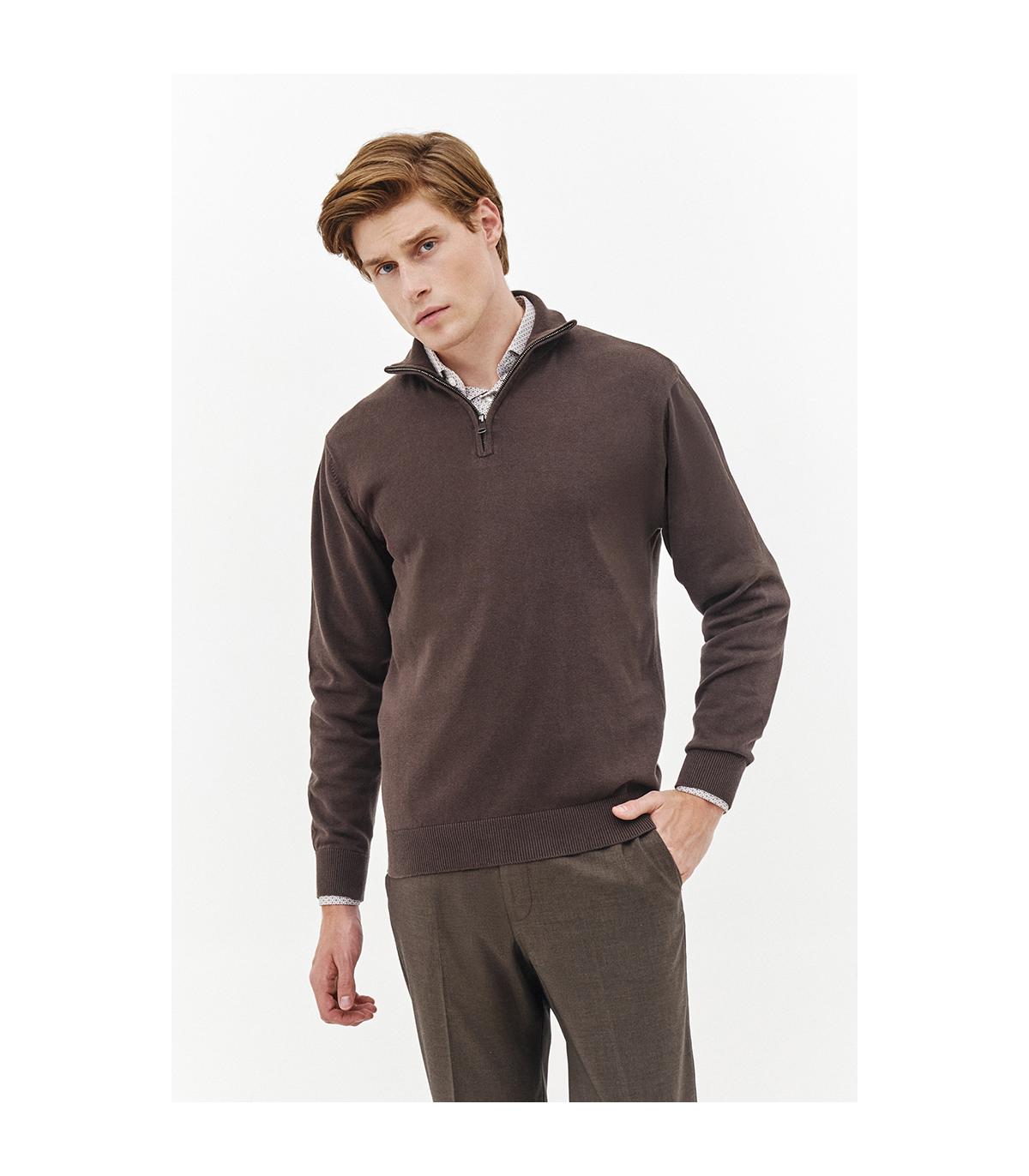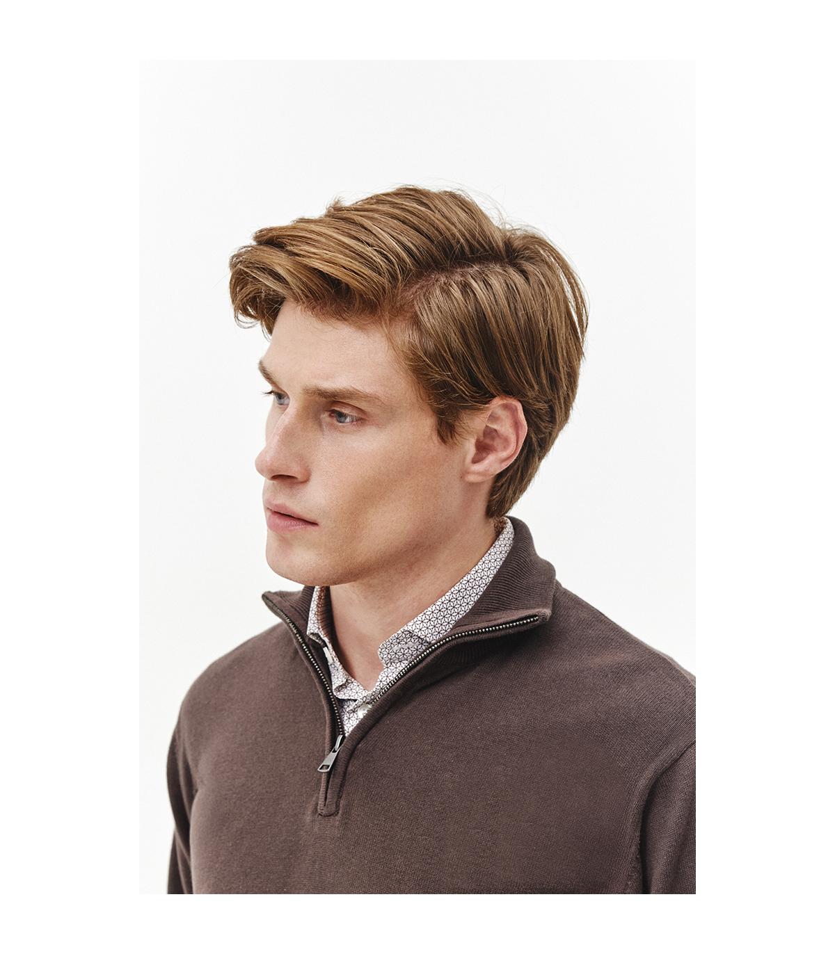 Stylowy półgolf z krótkim zapięciem na zamek, dostępny w uniwersalnym kolorze brązowym. Wykonany z naturalnej bawełny (100%), zapewnia komfort noszenia, miękkość i przewiewność. Dzięki delikatnej, gładkiej strukturze dzianiny półgolf ROKO doskonale dopasowuje się do sylwetki, zachowując przy tym swobodę ruchów.